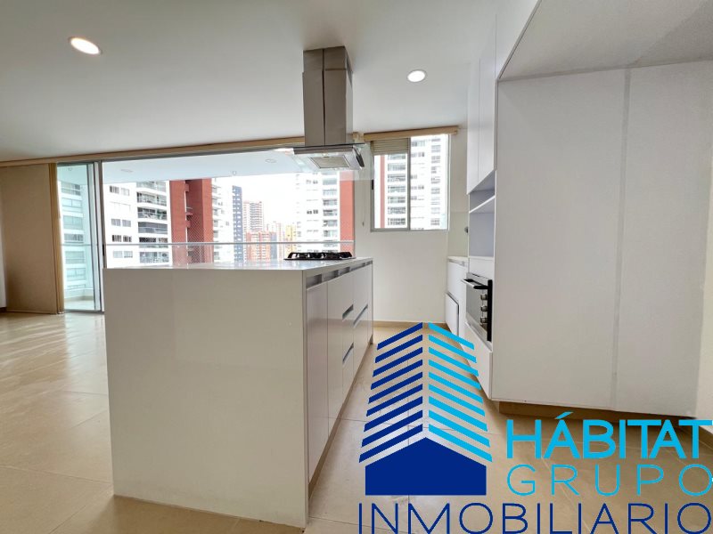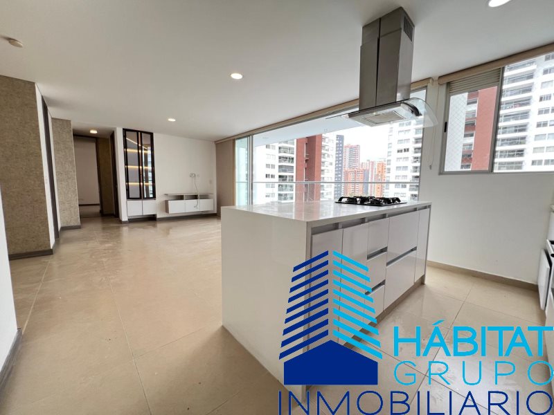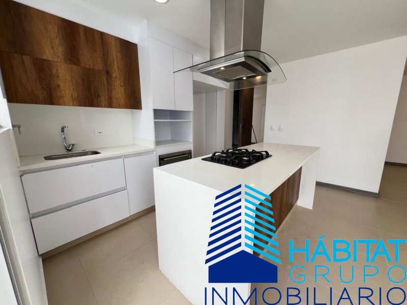 Apartamento en arriendo ubicado en La Estrella, sector Suramérica, con un área de 100 m². Cuenta con tres alcobas, dos closet, un vestier, dos baños, sala-comedor, estar, cocina integral con isla, zona de ropas, pisos en porcelanato y laminado, y balcón. El edificio dispone de ascensor. Incluye dos cuartos útiles y dos parqueaderos.